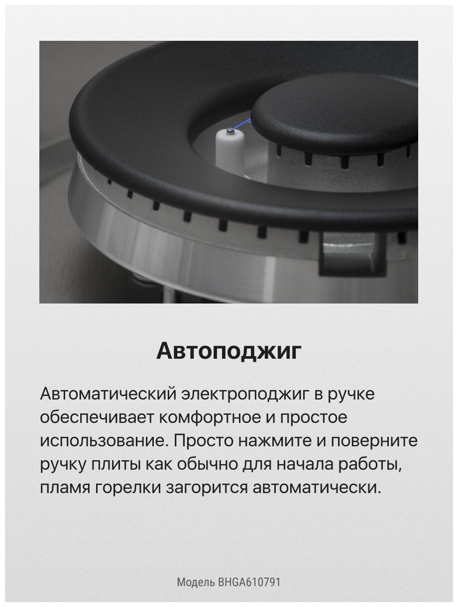 Встраиваемая газовая варочная панель Hansa BHGA 610791 интересное: