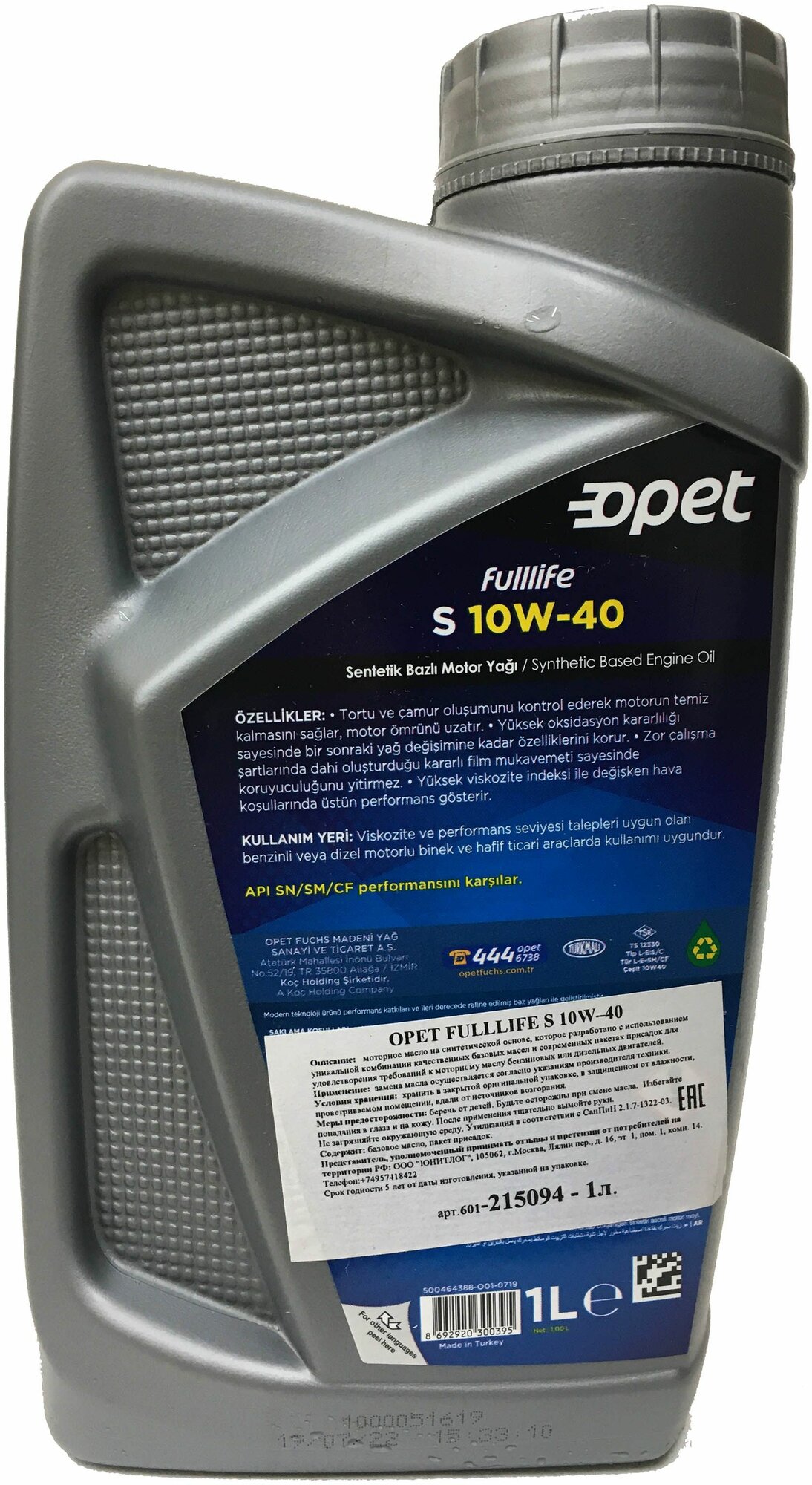 OPET 601215094 Синт. мот.масо Fulllife S 10W-40 CFSMSN 1