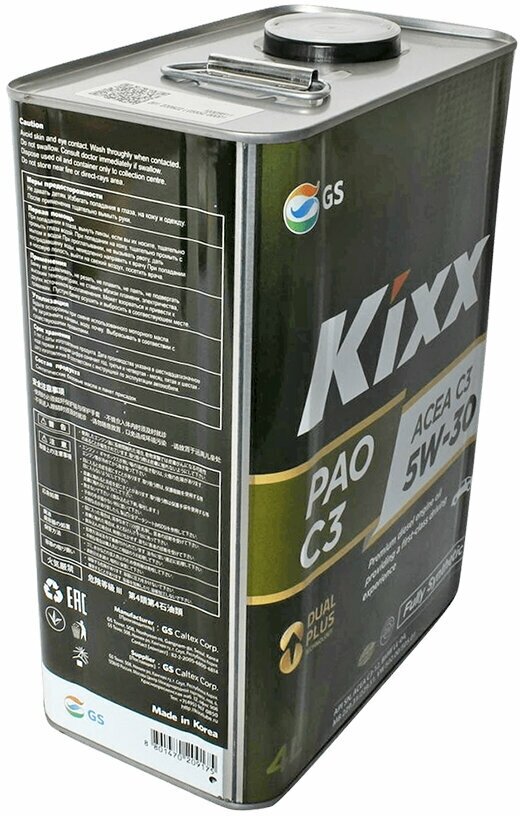Синтетическое моторное масло Kixx PAO C3 5W-30, 4 л, 1 шт.