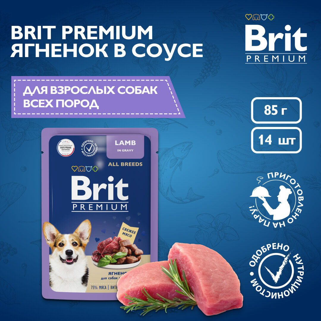 Брит Premium Пауч для взрослых собак всех пород ягненок в соусе, 14 x 85 г