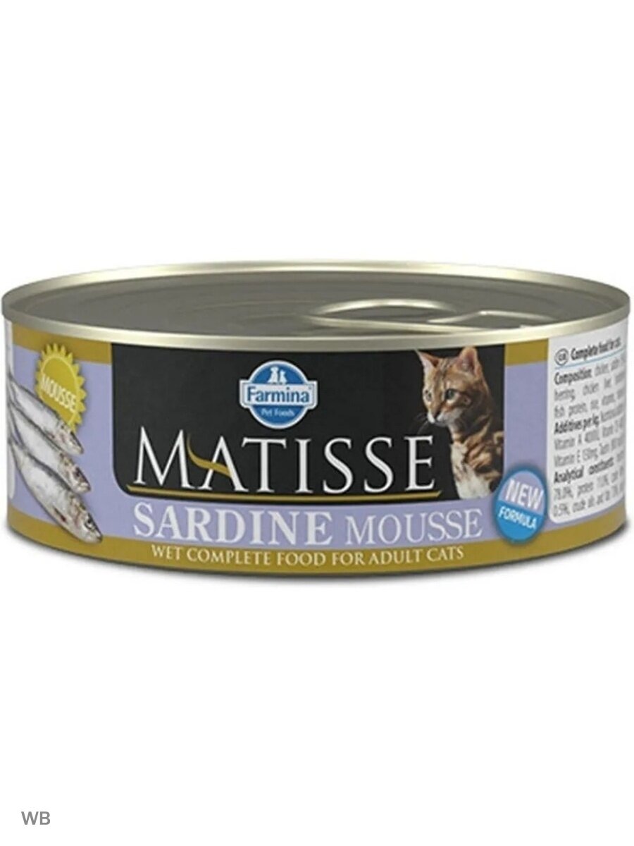 Консервы/влажный корм Matisse Cat Mousse Sardine для кошек всех пород, с сардиной, (85 гр*12 шт)