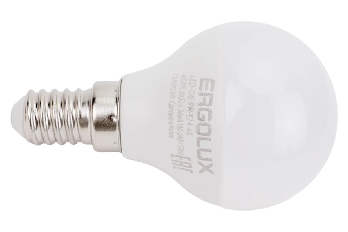 Лампочка ERGOLUX LED-G45-9W-E14-4K Шар 9 Вт, E14, белый
