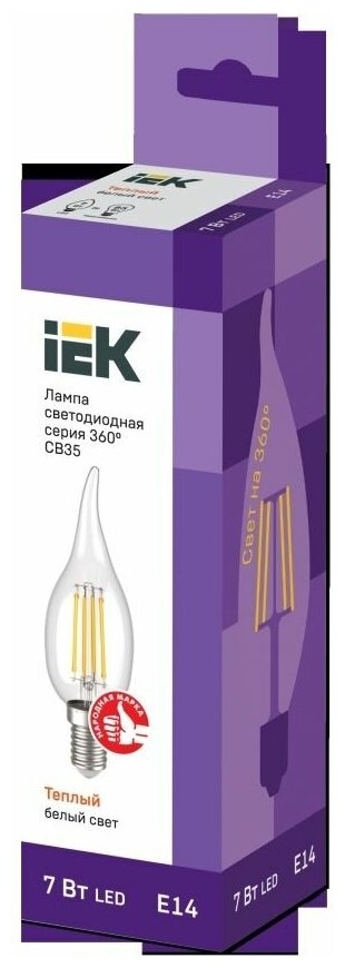 Лампа IEK серия 360 LED, CВ35, свеча на ветру, 7вт, 230В, 3000К, E14 LLF-CB35-7-230-30-E14-CL