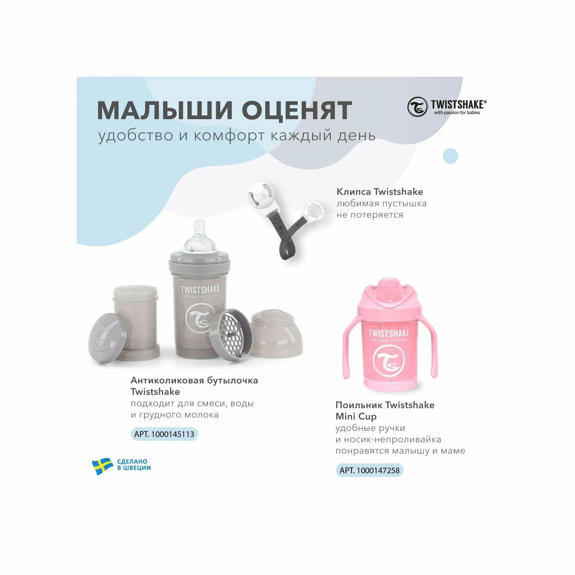 Пустышка Twistshake в наборе из 2 шт. Пастельный серый и белый. Возраст 0-6m. Арт. 78594