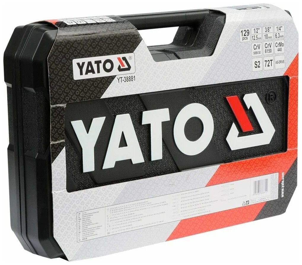 Набор инструмента YATO 129 предм, 1/4'', 1/2'', 3/8'', CrV, CrMo, 72T, S2, AS-DRIVE, YT-38881 Отличный подарок