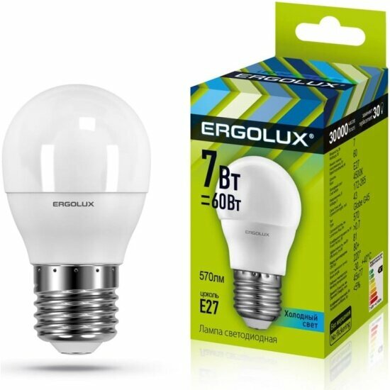 Светодиодная лампа Ergolux LED-G45-7W-E27-4K интересное: