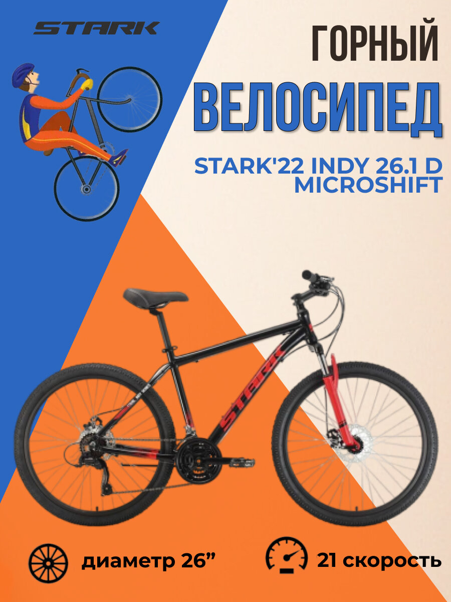 Горный велосипед Stark Indy 26.1 D Microshift, год 2022, ростовка 20, цвет Черный-Красный