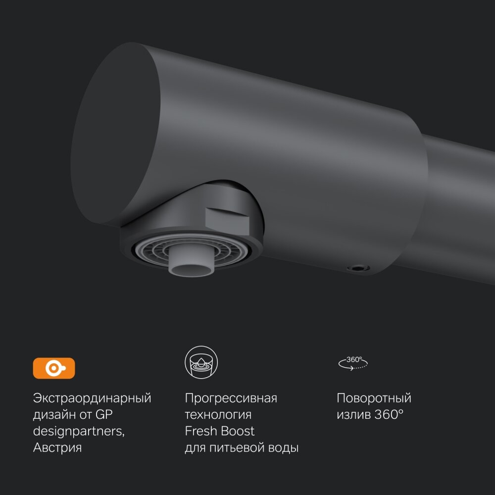 F8005722 Like, смеситель для кухни с каналом для питьевой воды, L-излив, черный матовый, шт.