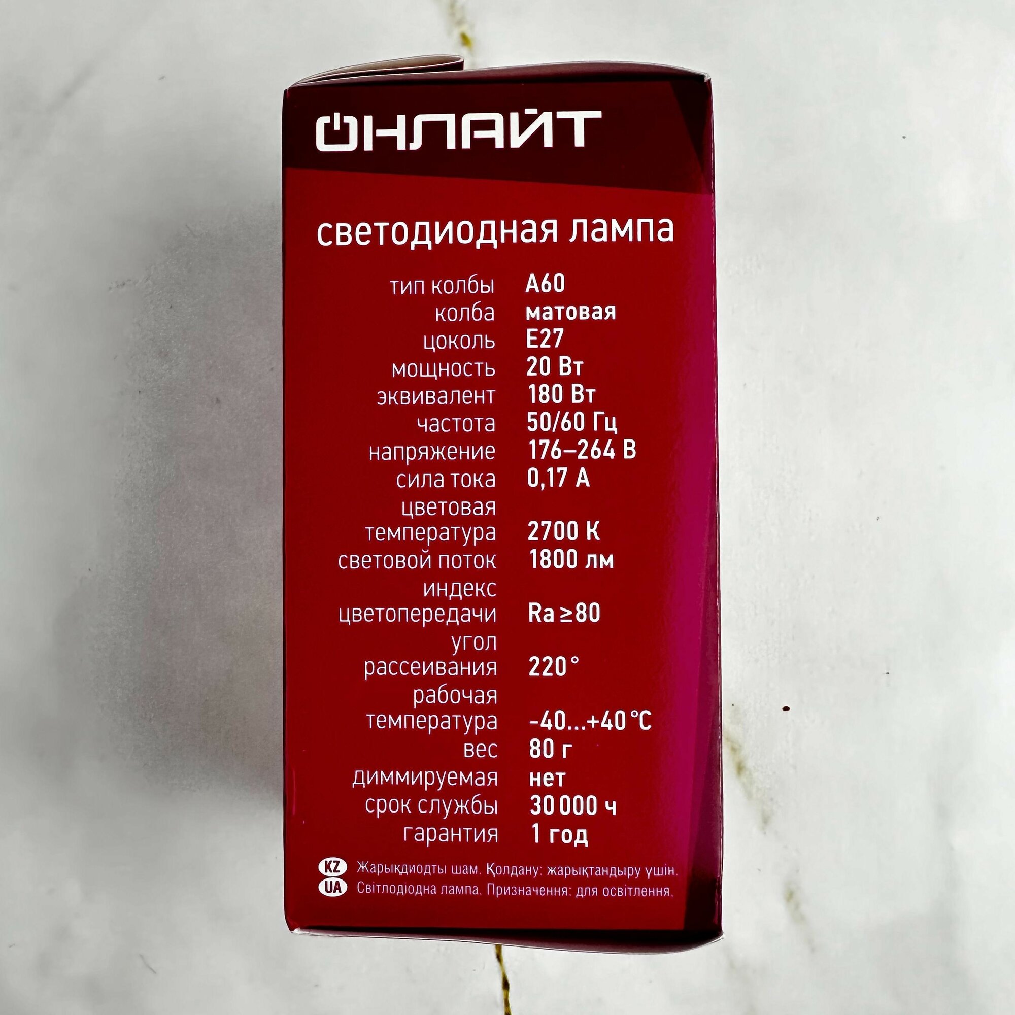 | Эквивалент лампы накаливания | 180 Вт |