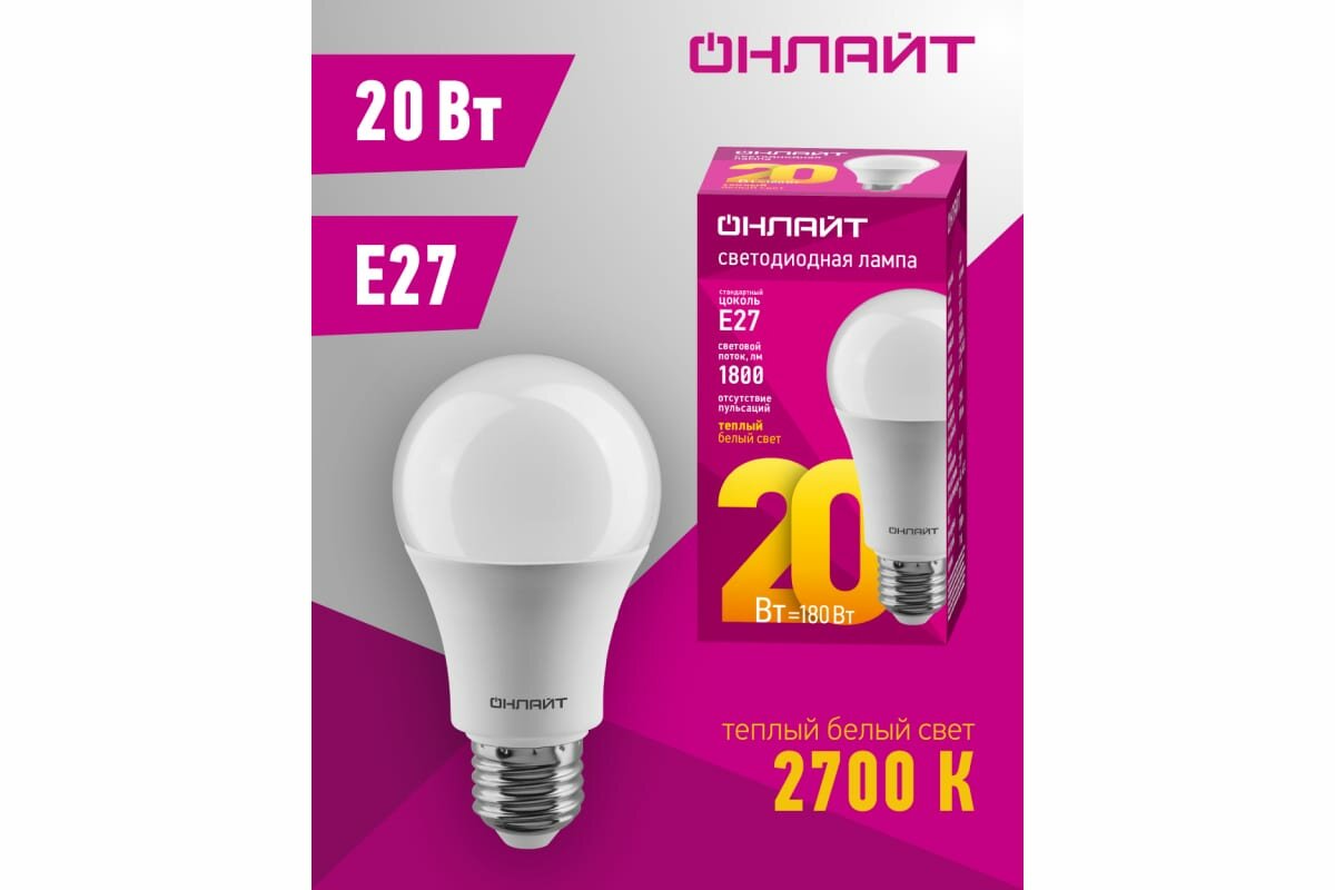 Ниже Вы можете прочитать отзывы на Лампа светодиодная онлайт 61157, E27, A60, 20 Вт, 2700 К, ознакомится с подробными характеристиками, посмотреть интересные обзоры и фотографии на Лампа светодиодная онлайт 61157, E27, A60, 20 Вт, 2700 К.