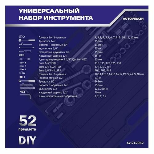 AUTOVIRAZH AV212052 Набор инструмента 52 предм. 1/2 1/4DR, CrV AUTOVIRAZH