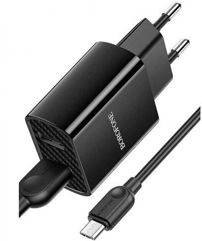 Сетевое зарядное устройство BOROFONE BA53A Powerway 2xUSB, 2.1А + кабель Type-C, 1м, черный