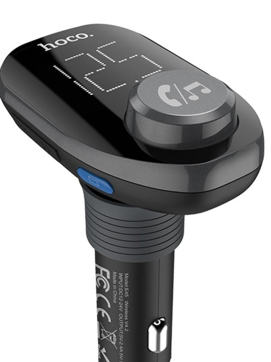 FM-трансмиттер+АЗУ 2USB 2.4A/1A Bluetooth 4.2 Hoco E45 Black
