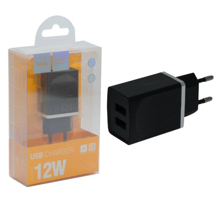 Сетевое зарядное устройство HOCO C43A 2USB 12W 2.4A черное