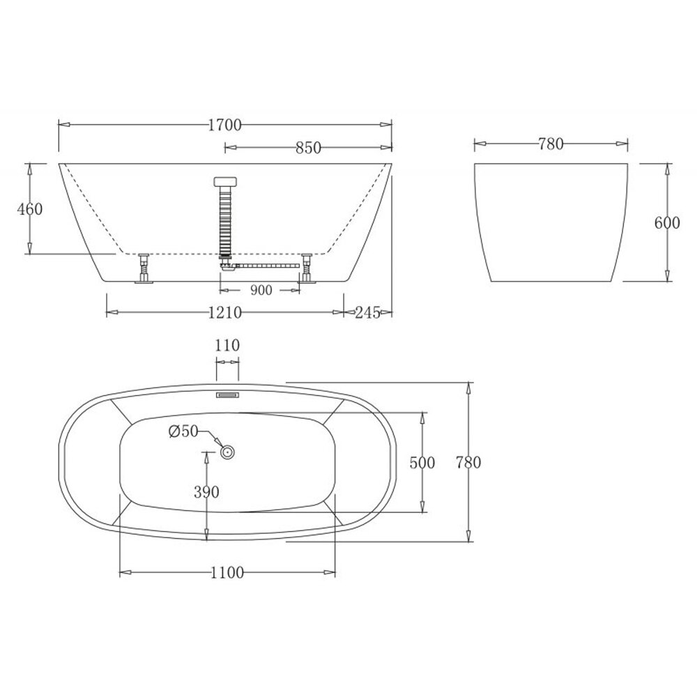 Ванна акриловая отдельностоящая без перелива BelBagno BB72-1700-W0
