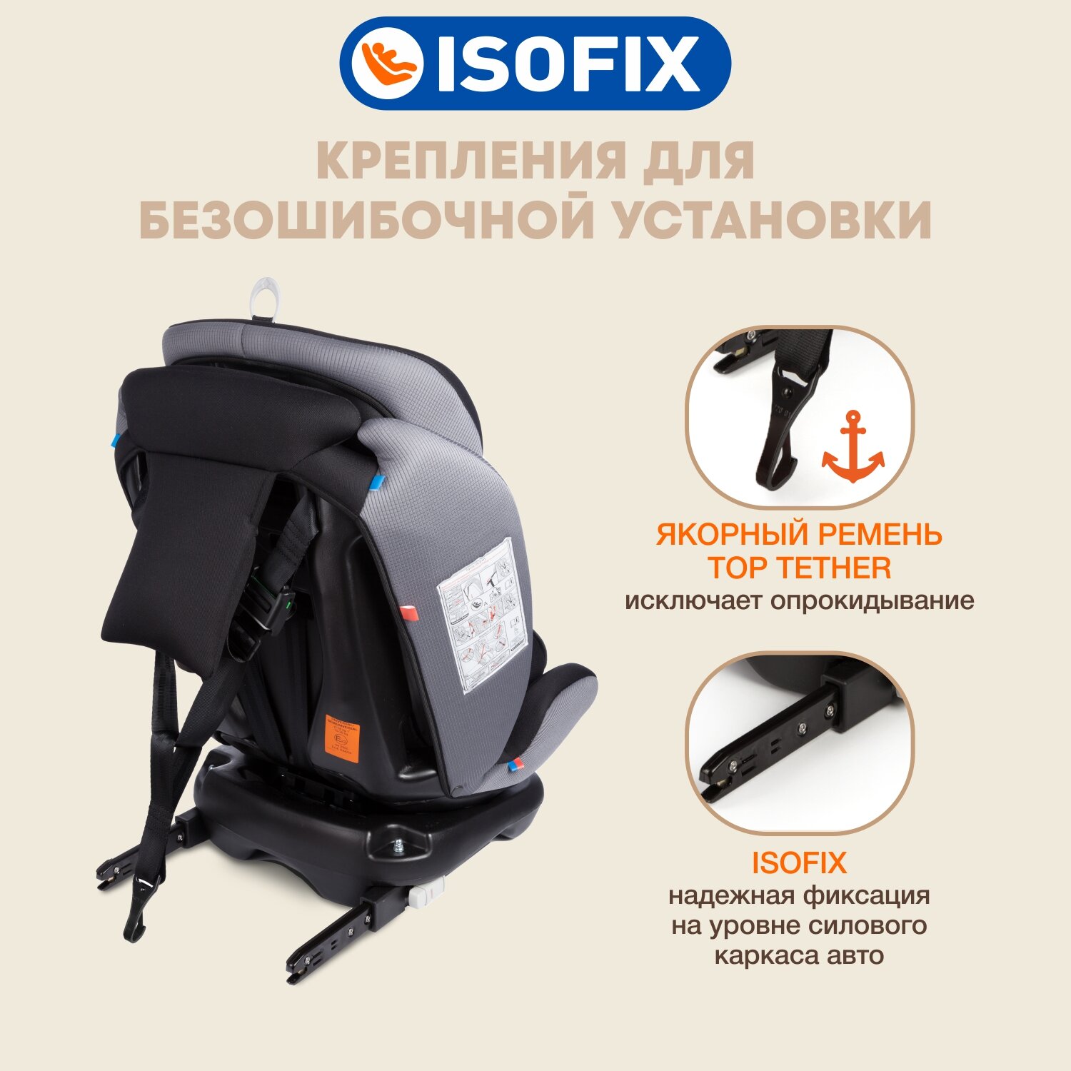 Автокресло детское Zlatek Cruiser Isofix поворотное с рождения до 12 лет / Isofix / 0+/1/2/3/до 36 кг 0-36кг / 0-12лет, серо-черный
