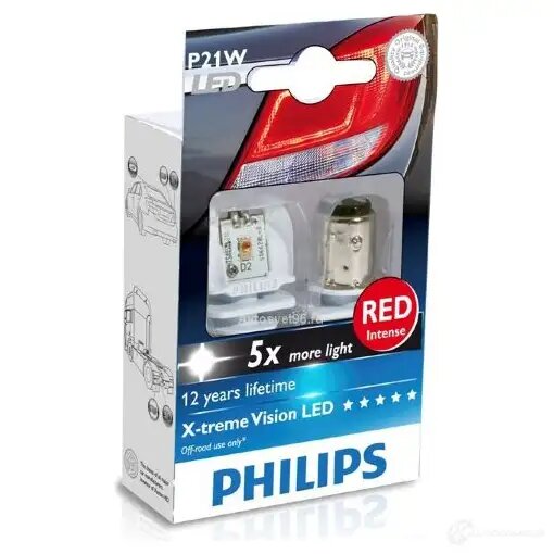Светодиод PHILIPS 12898RX2 Комплект светодиодных ламп 2шт. (PR21W) 12V RED PHILIPS 12898RX2 | цена за 1 шт