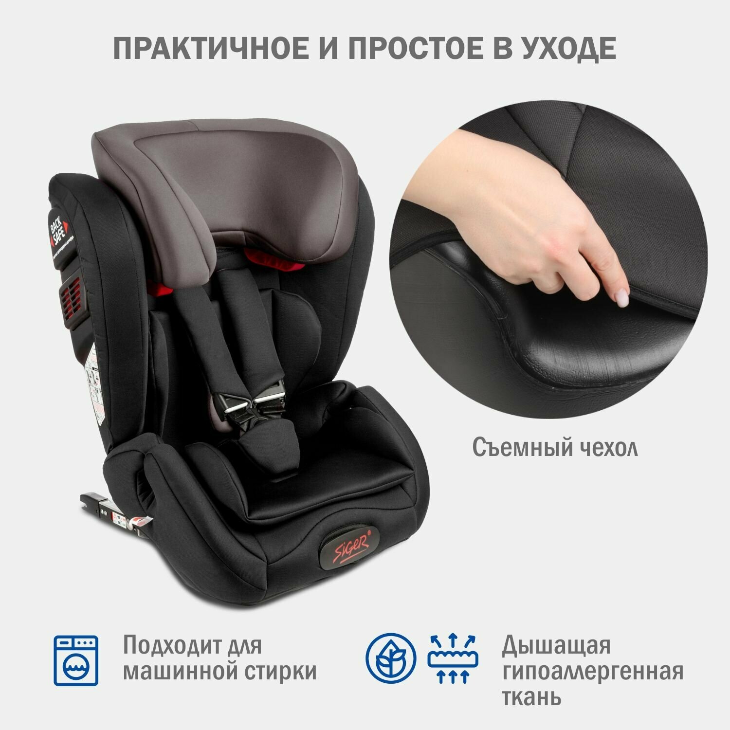 Автокресло детское Siger Гранд IsoFix от 9 до 36 кг, серое