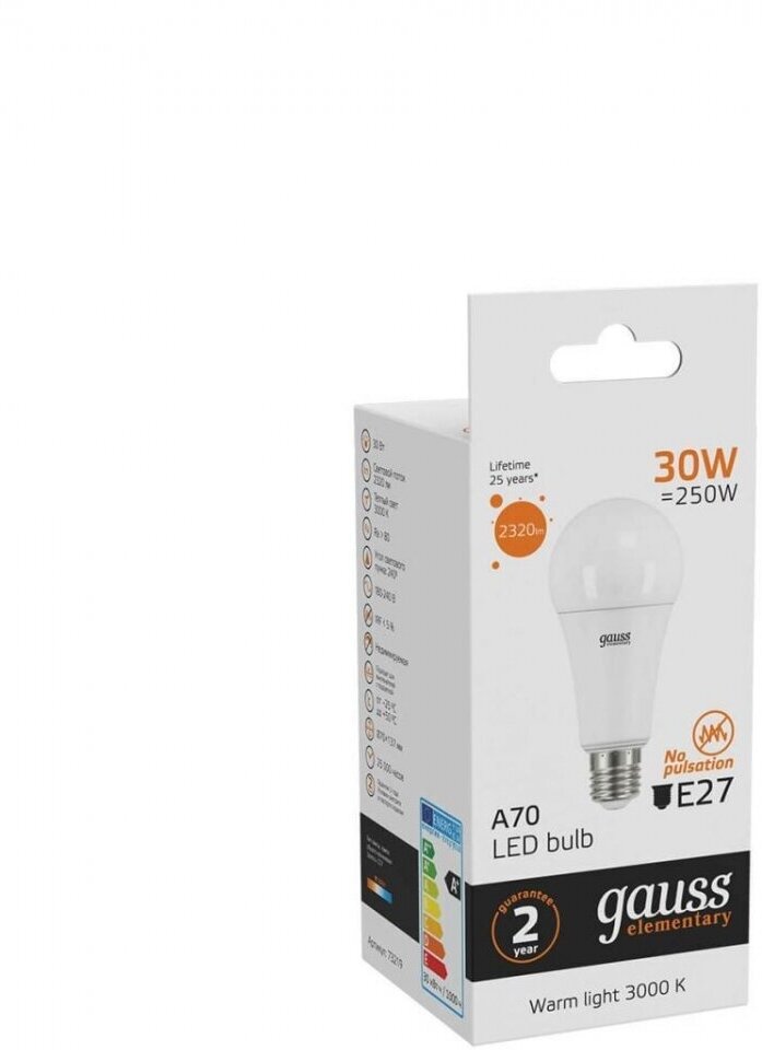 Светодиодная лампа GAUSS Elementary A70 30W 2320lm 3000K E27 LED 1/10/50