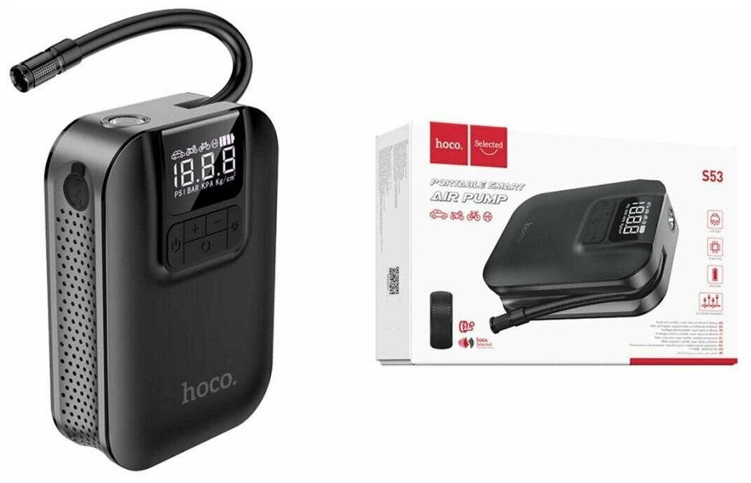 Автомобильный компрессор (смарт насос) Hoco S53 Breeze portable smart air pump черный интересное: