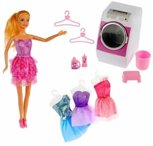 Купить Кукла со стиральной машиной и аксессуарами в коробке, 29 см.
