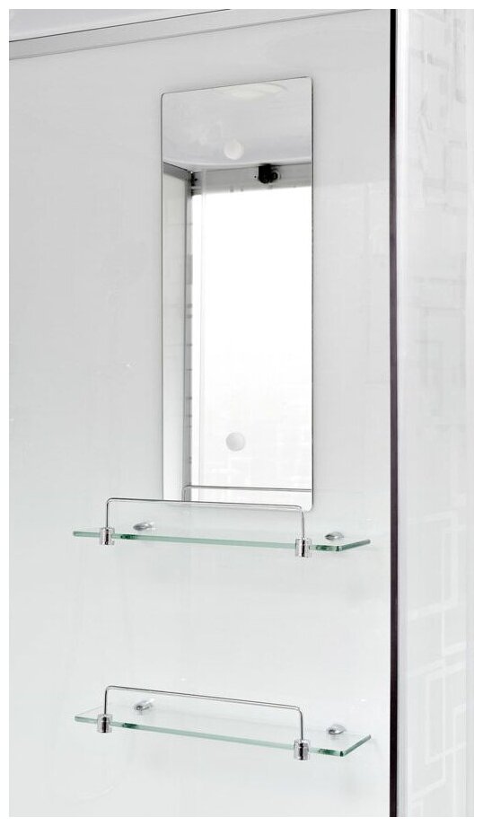 | Комплектация | зеркало, полки, душевая лейка |