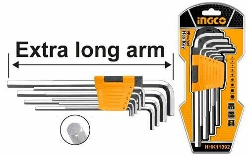 Набор шестигранников HEX Extra Long INGCO HHK11092 INDUSTRIAL 1,5-10 мм