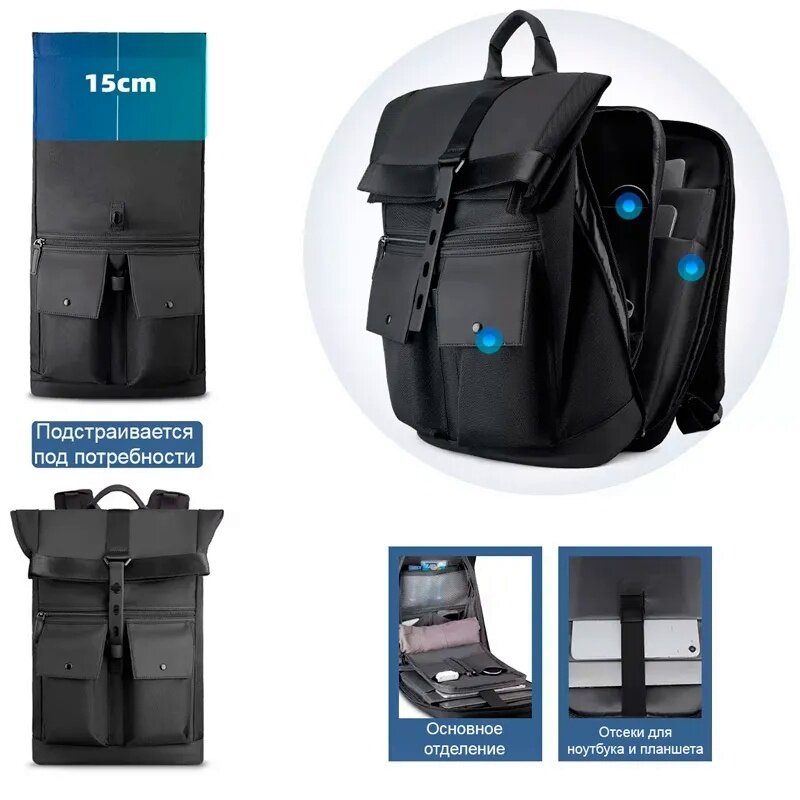 Рюкзак мужской городской дорожный для ноутбука 15.6 Mark Ryden MR1696 Черный водонепроницаемый тканевый для взрослых и подростков интересное: