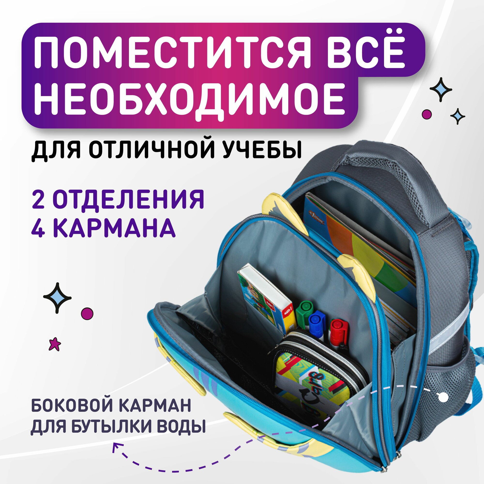 Рюкзак школьный Комус Котик с рыбкой, портфель анатомический для мальчика и девочки, 2 отделения, 4 кармана