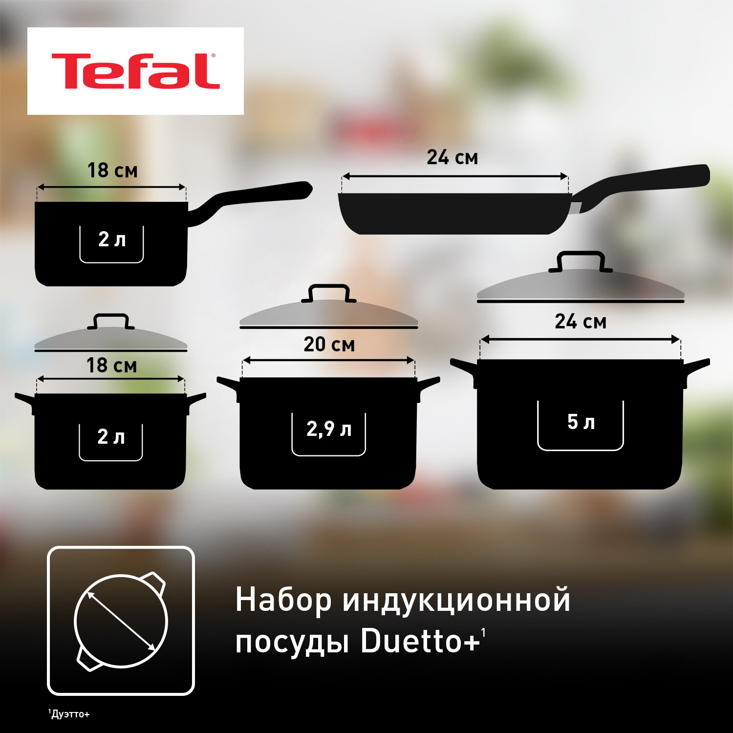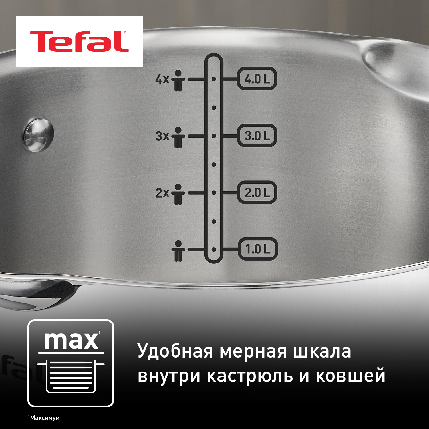 Набор посуды Tefal Intuition B864S674 с крышками, 6 предметов, нержавеющая сталь, подходит для индукции