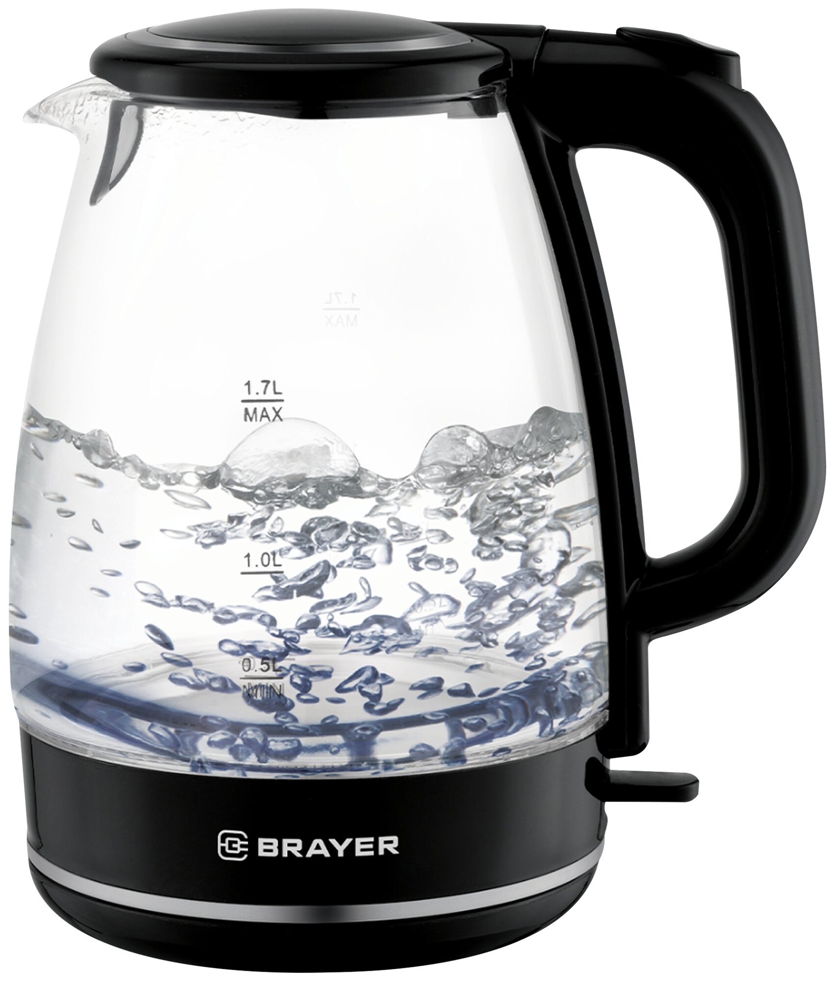 Чайник BRAYER BR1030, 1,7л, 2200Вт, закрытый нагревательный элемент, стекло, черный