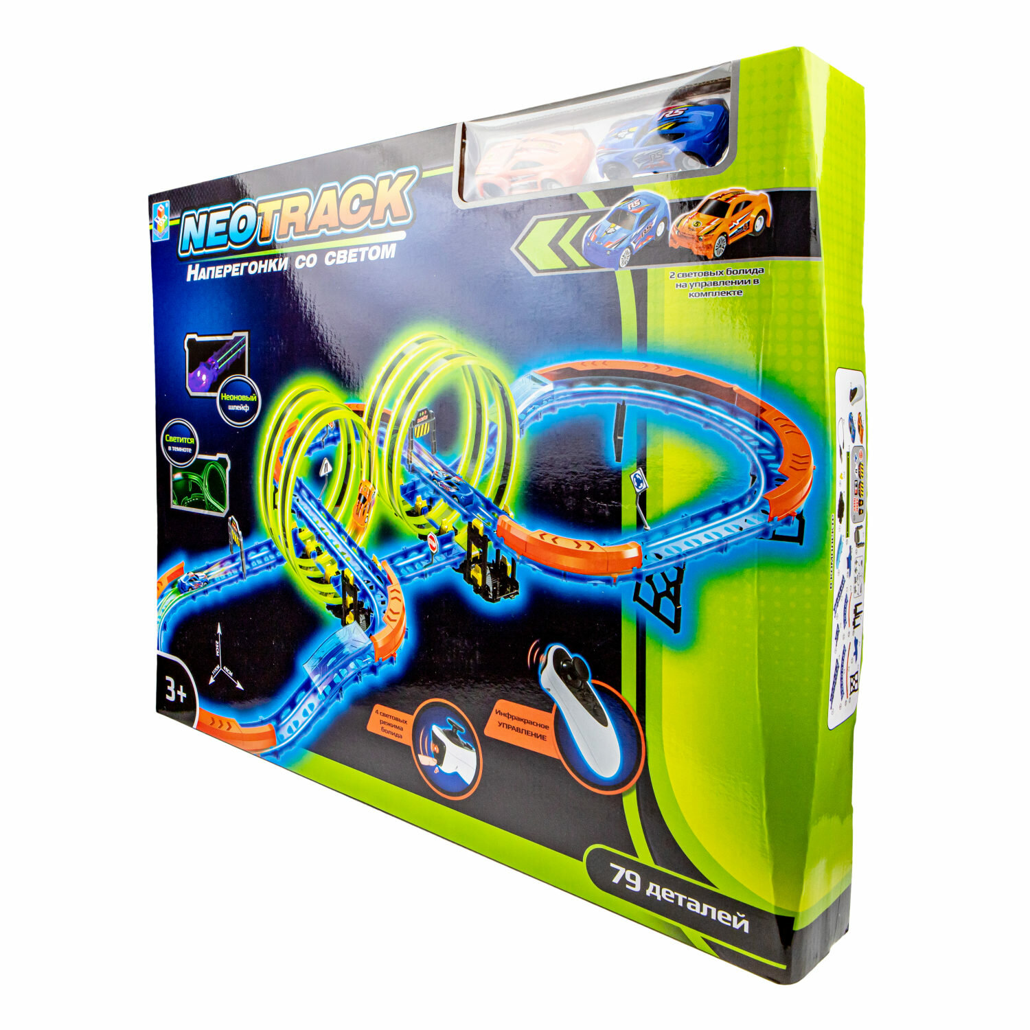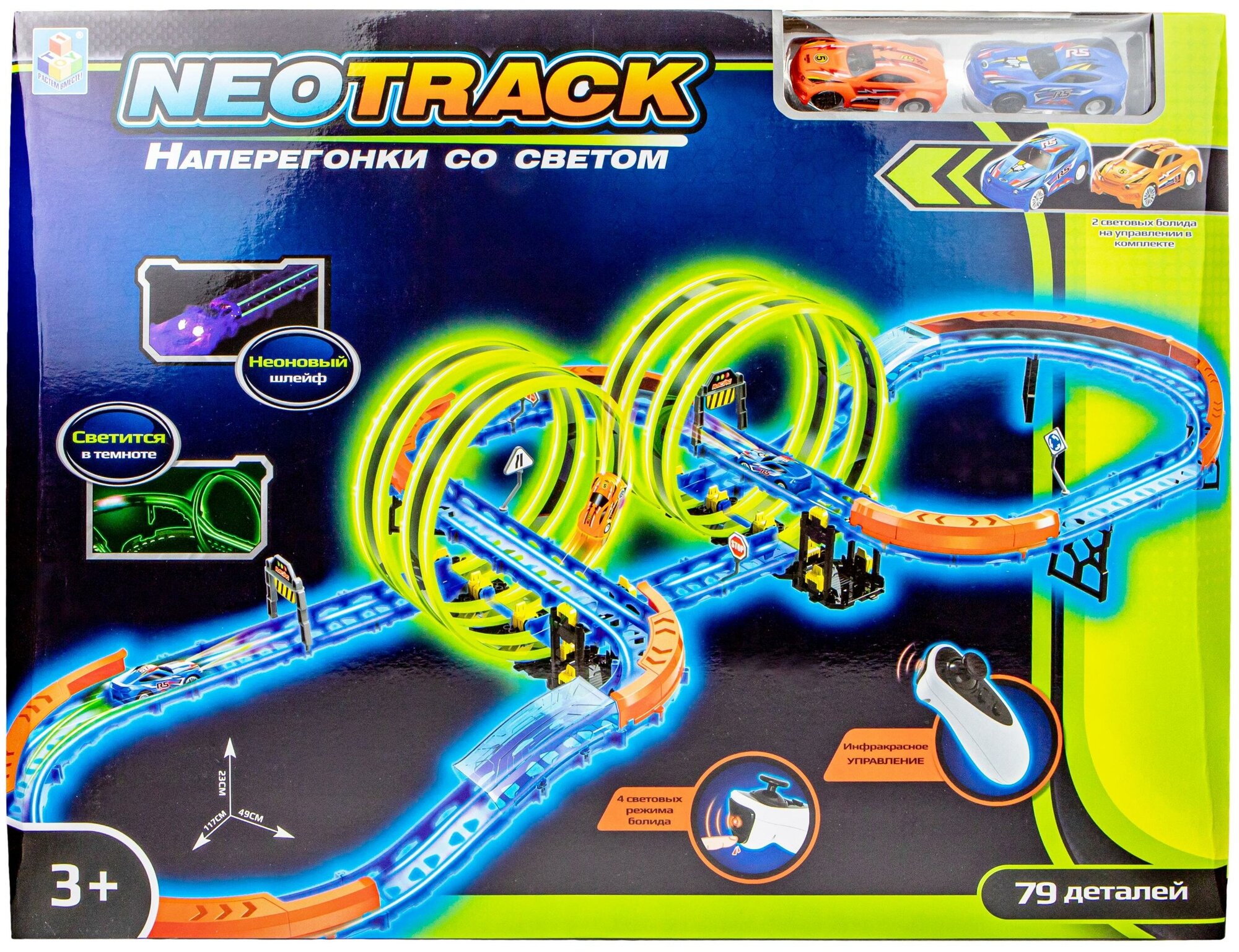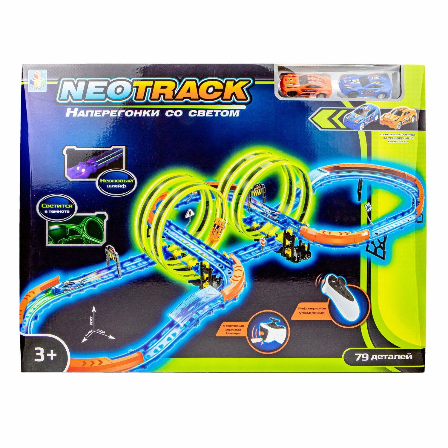 Автотрек 1Toy Neotrack, 79 деталей, свет, ик управление, 2 машинки с акб (Т21046)