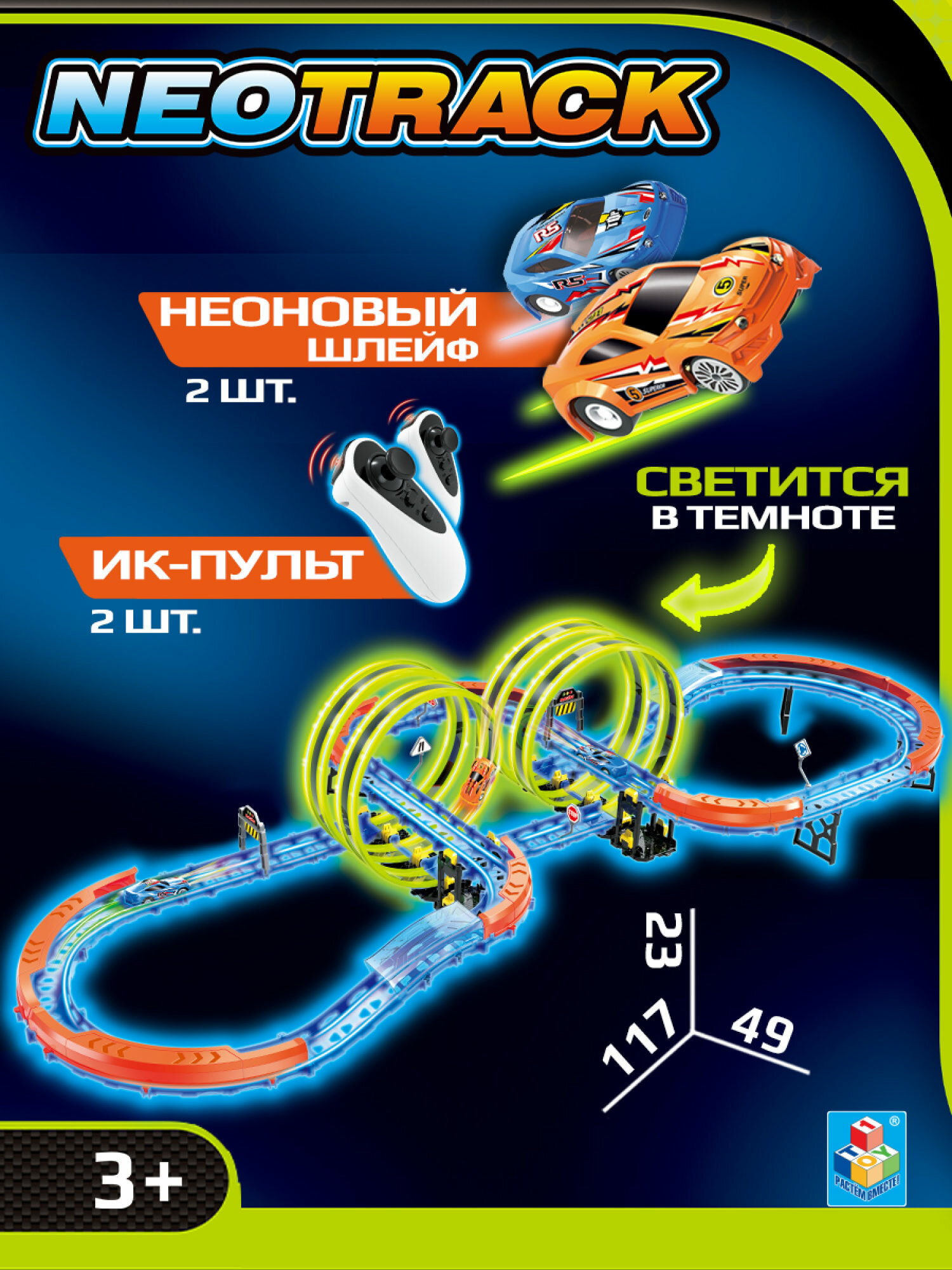 1toy Neotrack автотрек 79 деталей светящийся ик управление в компл 2 машинки с акб