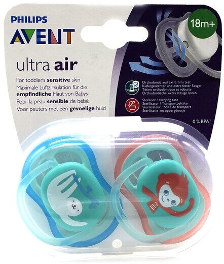 Детский товар Philips Пустышка 18+, Ultta Air, 2 шт, обезьянка и ленивец