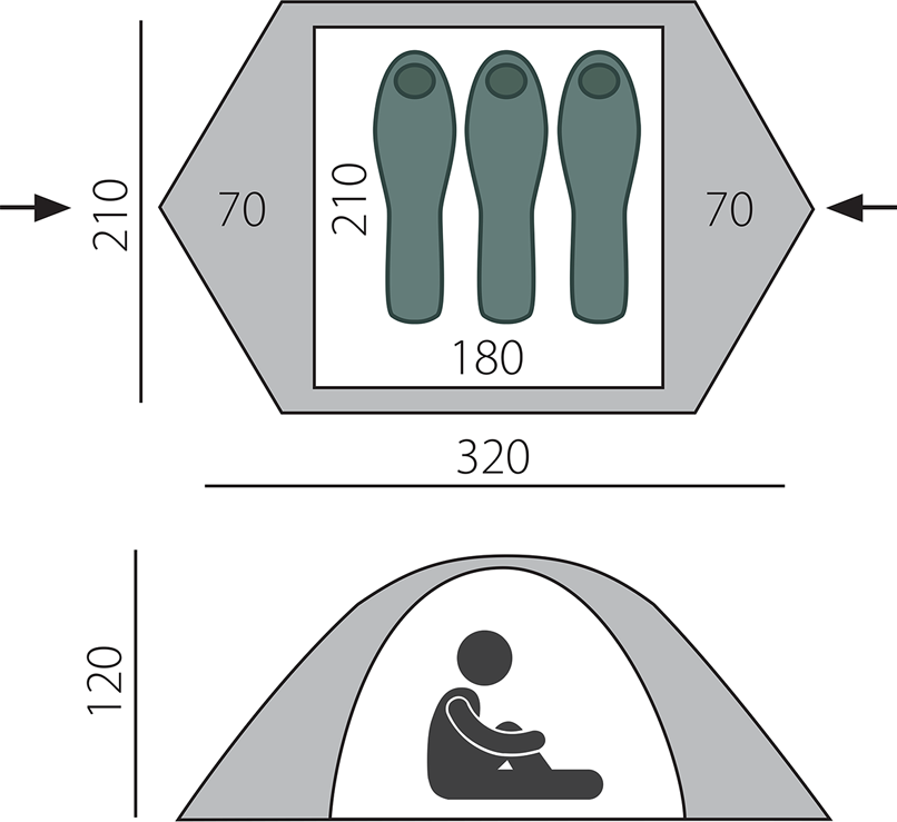 | Длина внешней палатки | 320 см |