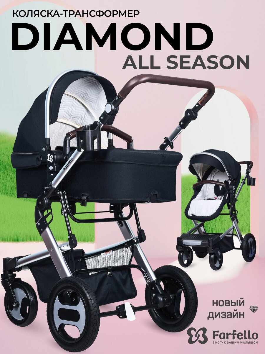 Коляска-трансформер Farfello Diamond All-Season (Черный) интересное:
