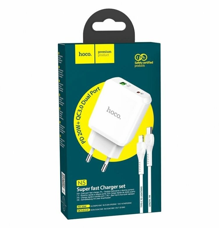 Ниже Вы можете прочитать отзывы на Сетевое зарядное устройство Hoco N5 Favor + кабель USB Type-C - Lightning, 20 Вт, white, ознакомится с подробными характеристиками, посмотреть интересные обзоры и фотографии на Сетевое зарядное устройство Hoco N5 Favor + кабель USB Type-C - Lightning, 20 Вт, white.