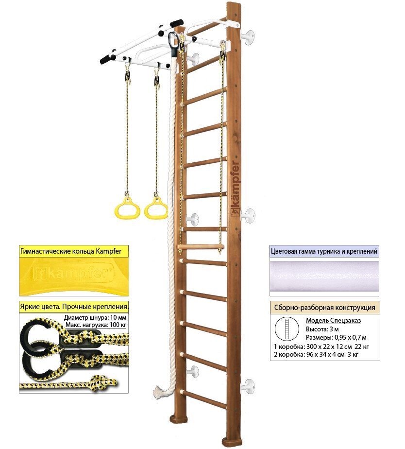 Шведская стенка Kampfer Helena Wall №2 Ореховый Высота 3 м белый турник