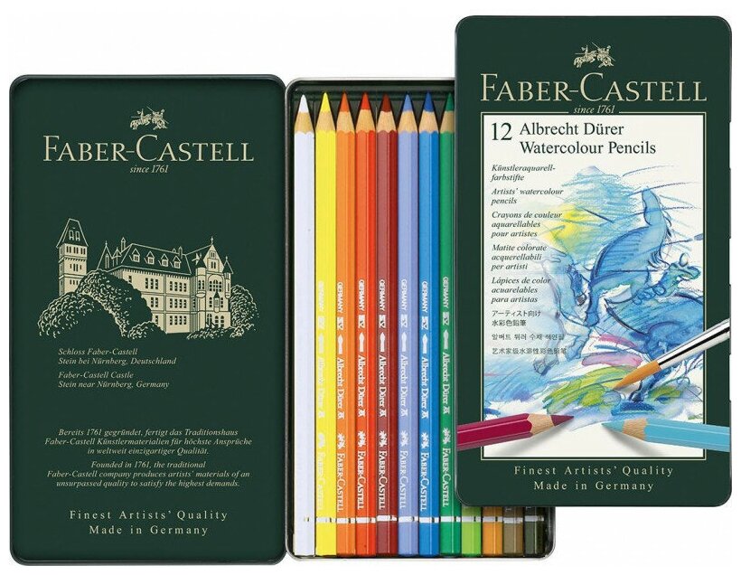 Карандаши акварельные художественные Faber-castell "Albrecht Durer", 12 цветов, метал. коробка