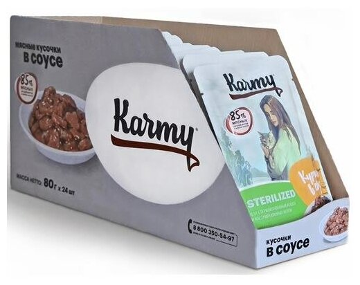 Влажный корм для стерилизованных кошек Karmy с курицей 24 шт. х 80 г (кусочки в соусе)