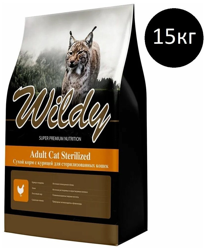 Сухой корм для стерилизованных кошек Wildy Adult Cat Sterilized, с курицей 15 кг
