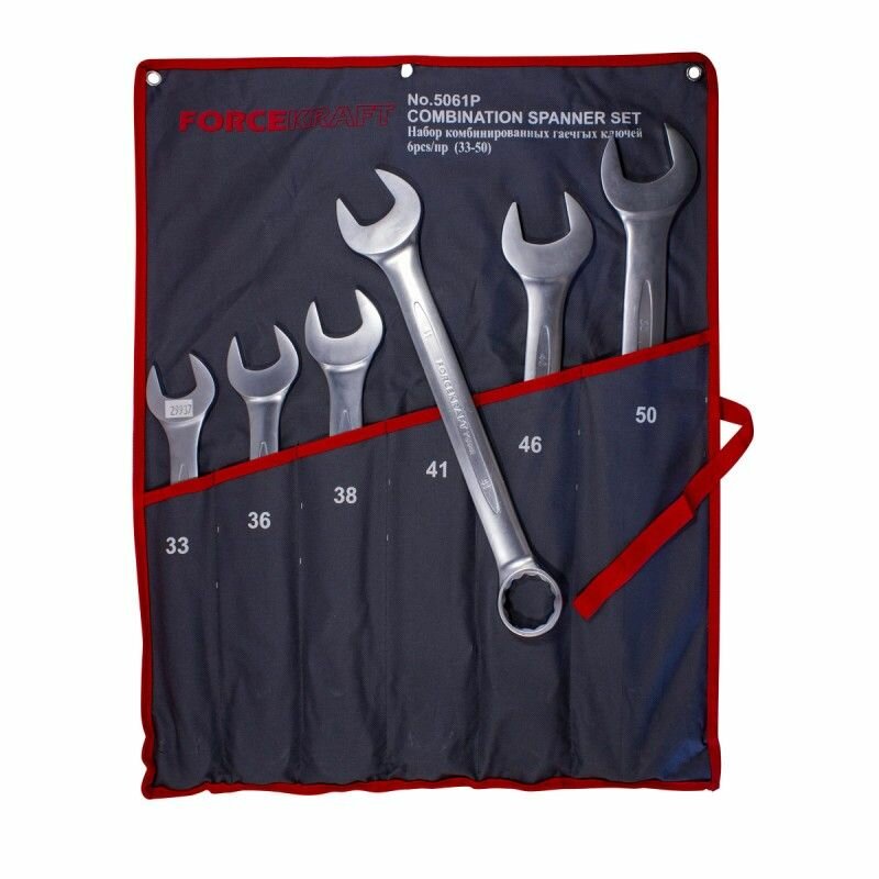 Набор ключей комбинированных 6 предметов (33,36,38,41,46,50мм), на полотне FORCEKRAFT FK-5061P