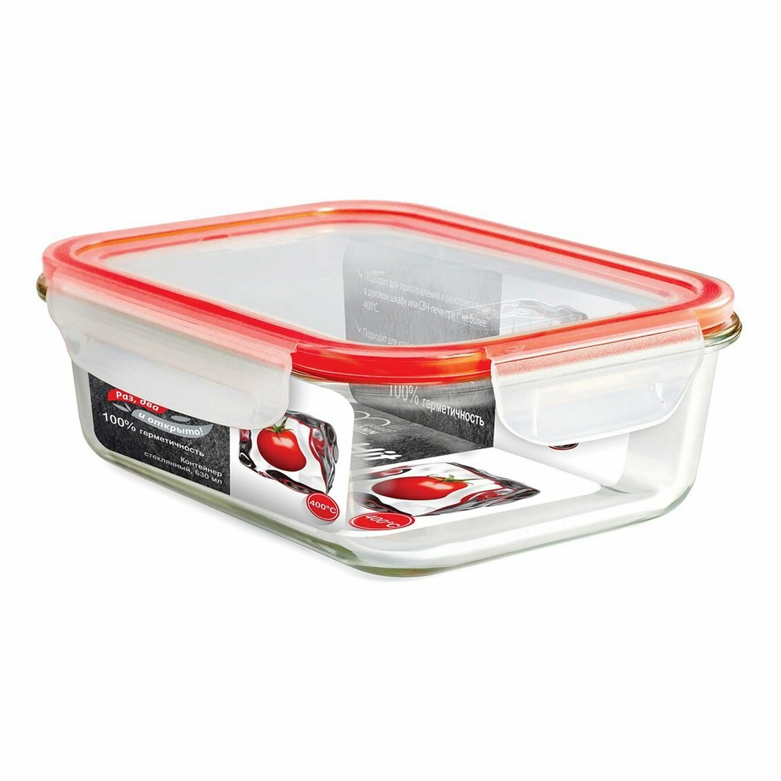 Контейнер пищевой стеклянный (+400 гр С) с крышкой FACKELMANN Fresh Hit, 630 мл, 100% герметичный для приготовления