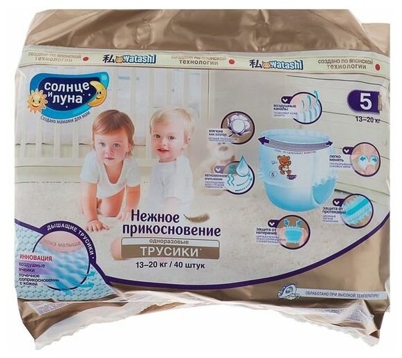 Солнце И луна нежное прикосновение Детские одноразовые Подгузники-трусики 5/XL 13-20 кг jambo-pack 40шт