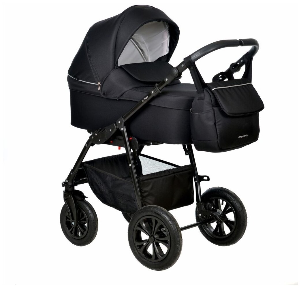 Коляска CHARLOTTE Mono 2в1 (Indigo) (Cm 05 (черный+серебряная кожа))