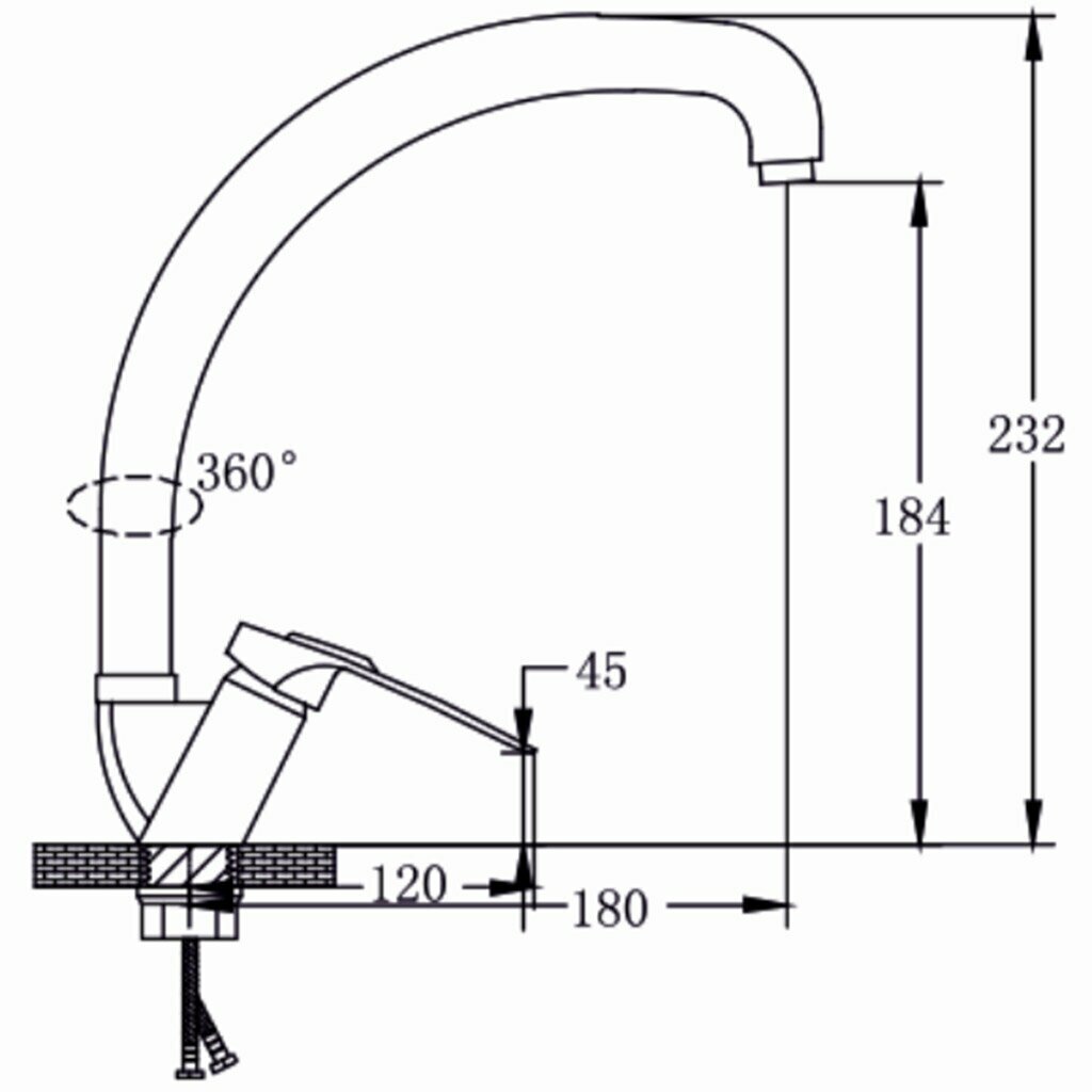 Смеситель для кухни, РМС SL55-011F, поворотный излив, однорычажный, с гибкой подводкой