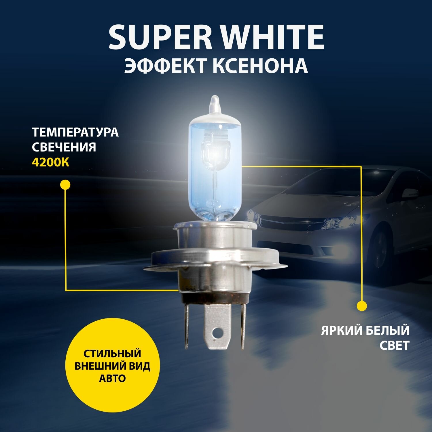 Лампа 12 В H4 60/55 Вт Super White галогенная блистер Goodyear GOODYEAR GY014127 | цена за 1 шт
