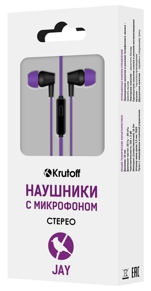 Наушники с микрофоном Krutoff Jay (фиолетовые) интересное: