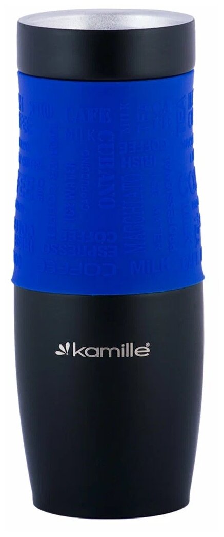 Термокружка 480 мл. из нержавеющей стали Kamille KM-2067 с TPR-вставкой и ремешком (2067 / синий)