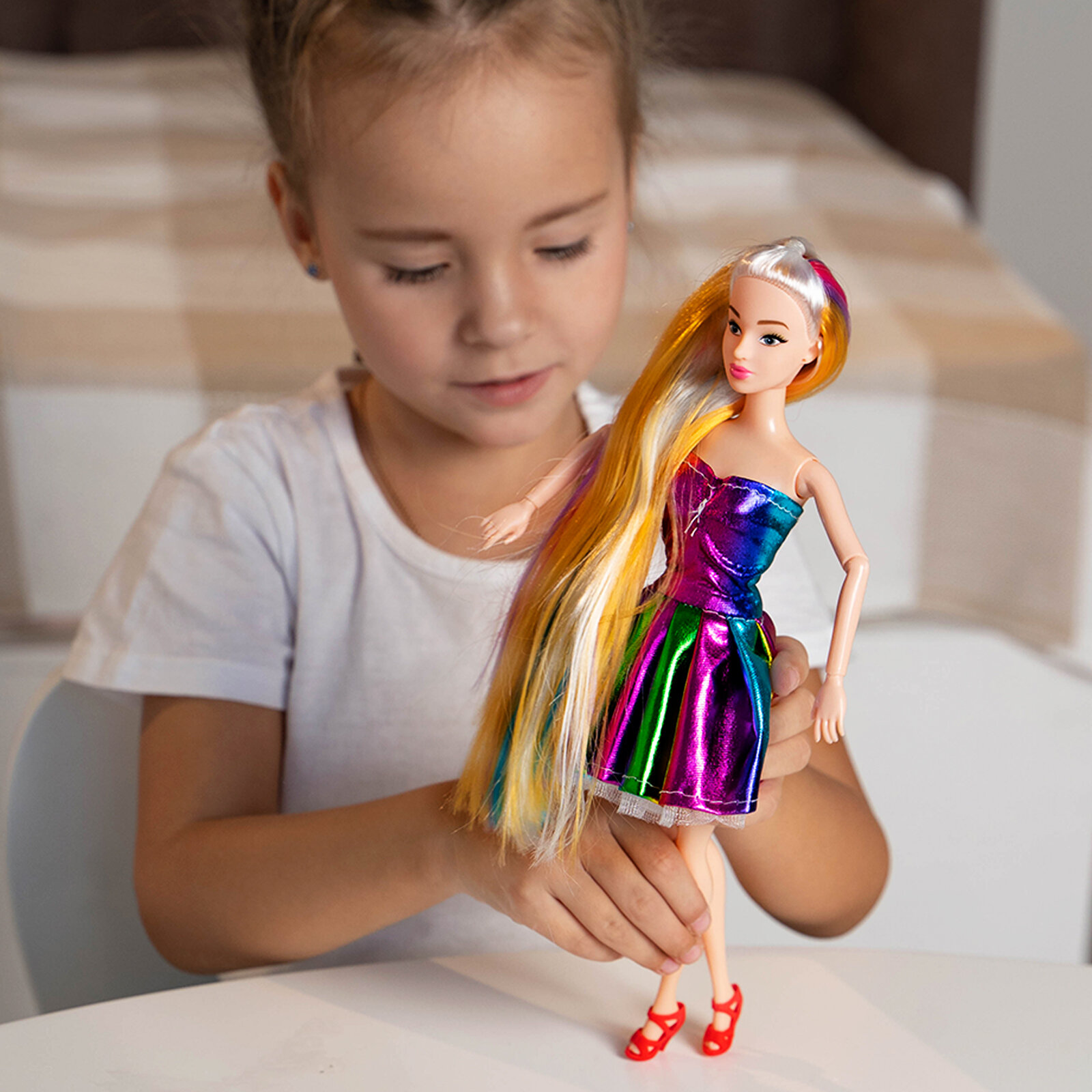 Купить Кукла модель шарнирная «Радужный стиль», в платье